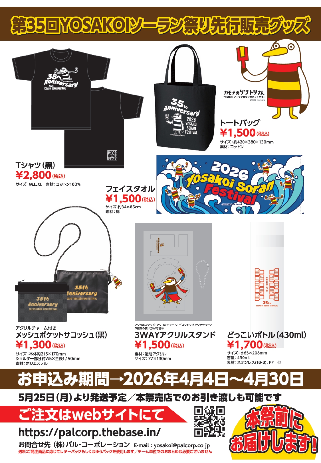 第35回YOSAKOIソーラン祭りを遊びつくすために、オフィシャルグッズの先行販売を開始します!